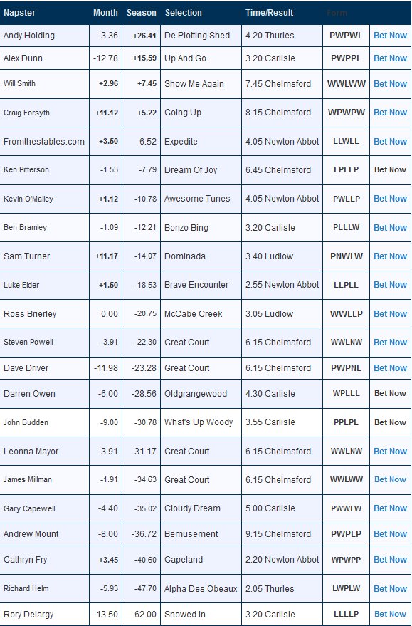 2083x720 - We provide tables of current horse racing selections and naps from a selection of newspapers, updated daily, along with historical comparison of their performance.